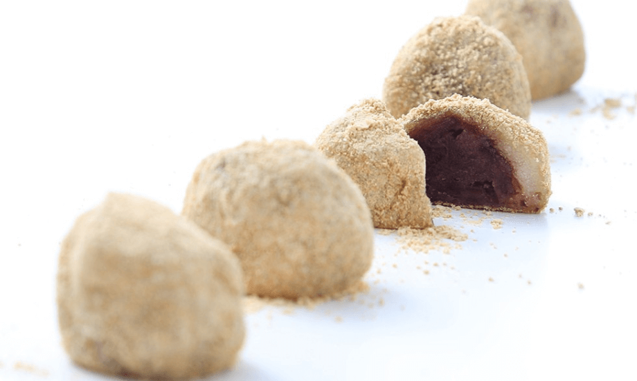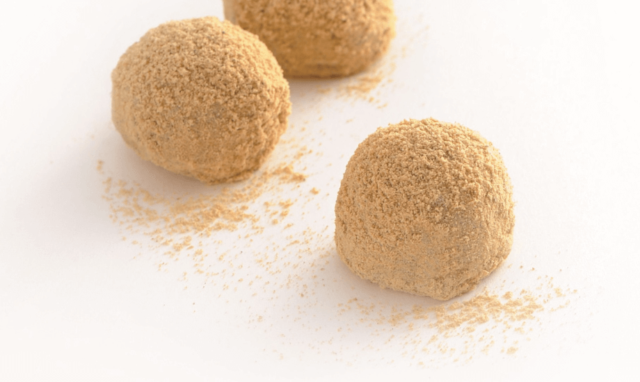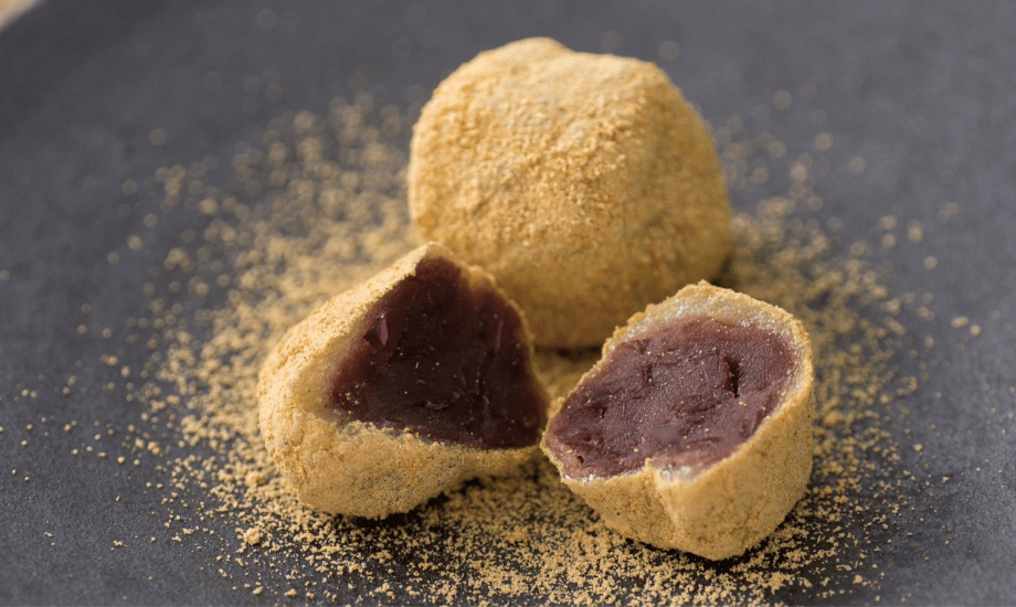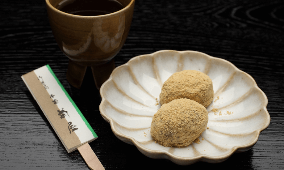 その最たるものが、本家菊屋を代表する和菓子「御城之口餅(おしろのくちもち)」。一口大に丸めたつぶあんを求肥で包み、きな粉をまぶした一品です。