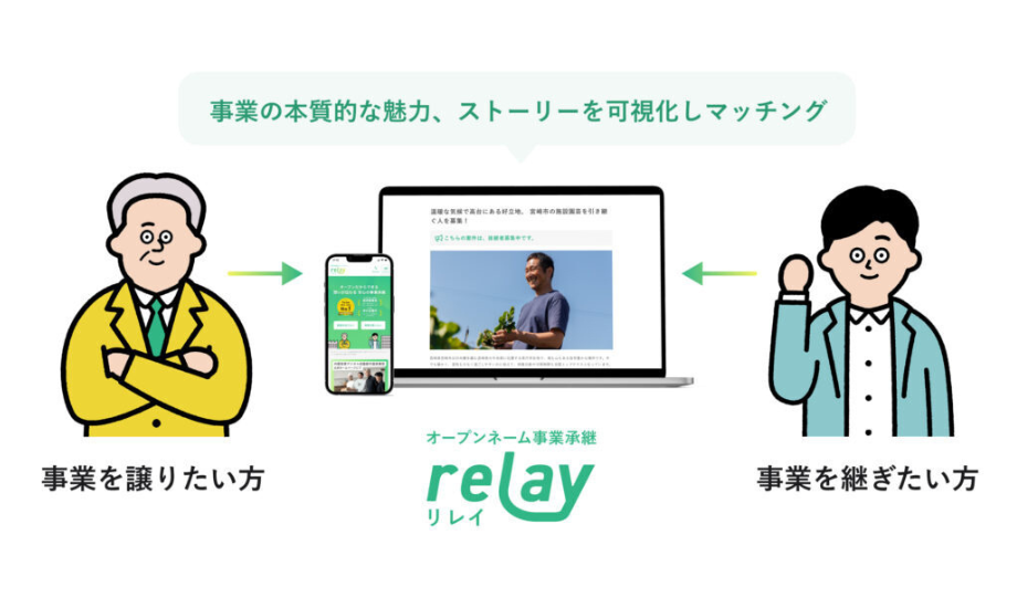 従来の事業承継は、情報保護の観点から匿名で行われるのが一般的でした。一方relayは、企業の名称や事業内容を公開する「オープンネーム」で後継者を公募する点が最大の特徴です。