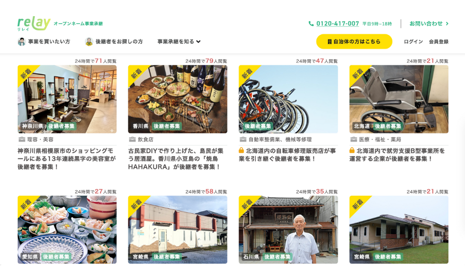 relayを利用してきた譲り手の事業分野は多岐に渡ります。自治体からの紹介でrelayを知り、掲載に至る事業者も多いのだとか。