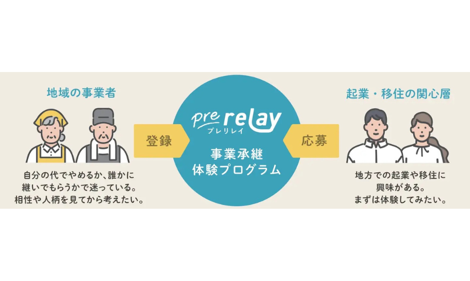 そして、2025年には内閣府が実施する「令和7年度関係人口創出・拡大のための対流促進事業」の採択事業の一つとして、「おためし」で譲り手と継ぎ手の関係を育む事業承継体験プログラム「pre relay(プレリレイ)」の提供も開始しました。