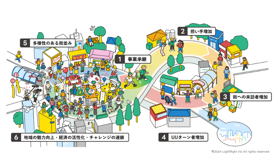 ライトライトでは事業承継をきっかけに地域の魅力が向上する、理想の未来を無限大記号(インフィニティ)になぞらえ「relay インフィニティモデル」と呼んでいます。このモデルにもとづいた地域活性も、目標のひとつです。