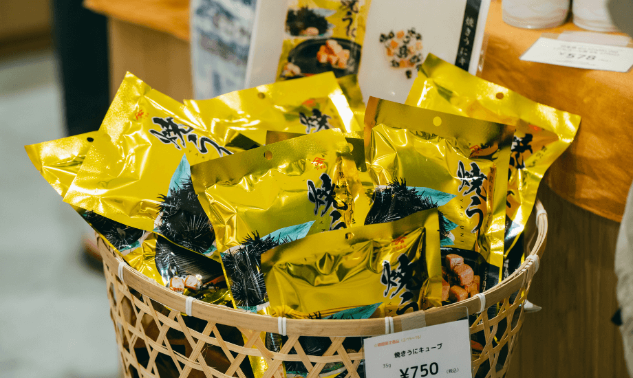 2月15日〜16日の2日間に開催されたPOP UPで販売する商品に、浪川さんが選んだのは、「雲丹醤油(うにしょうゆ)」とうにと魚のすり身を混ぜて焼き、キューブ状にカットした、うにの味がギュッとつまった大人のおつまみ「やまみ 焼うに」でした。