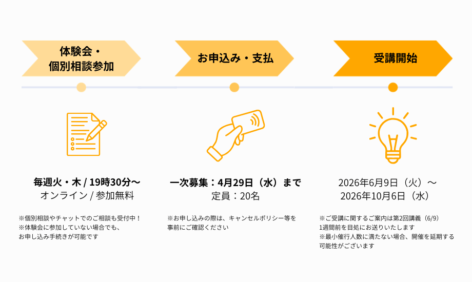 ※開講期間:2026年6月9日(火)〜 2026年10月6日(火)/ 全4ヶ月