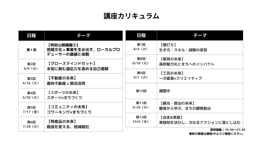 9回のケーススタディに登壇するのは、各地でローカルビジネスを成立させてきた実践者たち。どのテーマも「ローカルで本当に事業になるのか?」という問いへの、リアルな答えです。