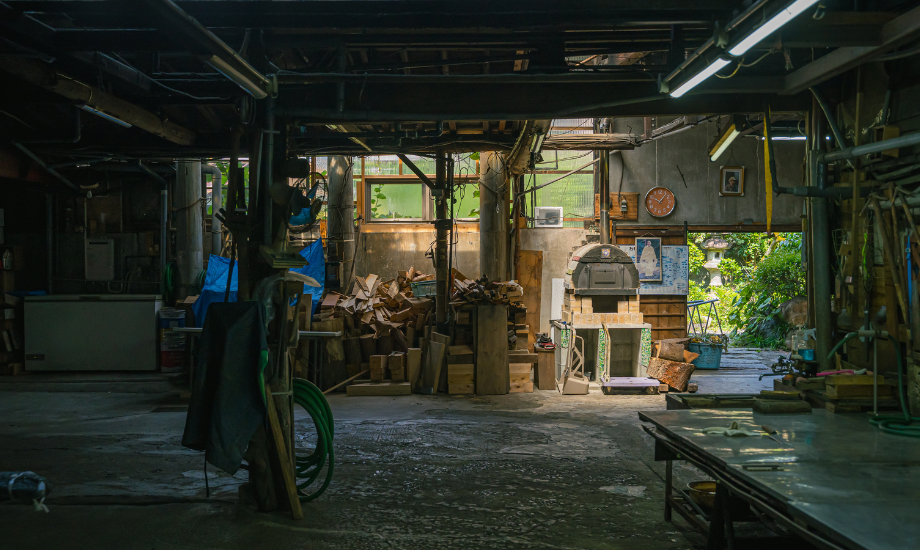 その年季を感じる加工場に1歩足を踏み入れると、見上げる高い天井、奥行きのある広々とした空間——。