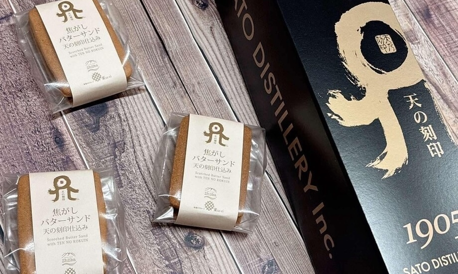 第1弾として発売されたのが、宮崎県・延岡市の「佐藤焼酎製造場」が手がけるシングルモルトウイスキーを使った「焦がしバターサンド〈天の刻印仕込み〉」です。焼酎文化が根強い宮崎県の特性を活かした一品となりました。