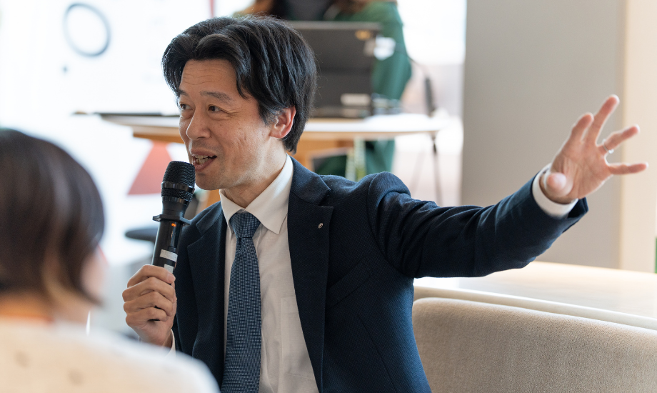 坂田氏(以下敬称略):スノーピークビジネスソリューションズの坂田です。アウトドア体験を活かした企業研修やオフィスデザインを手がけ、組織づくりを支援しています。