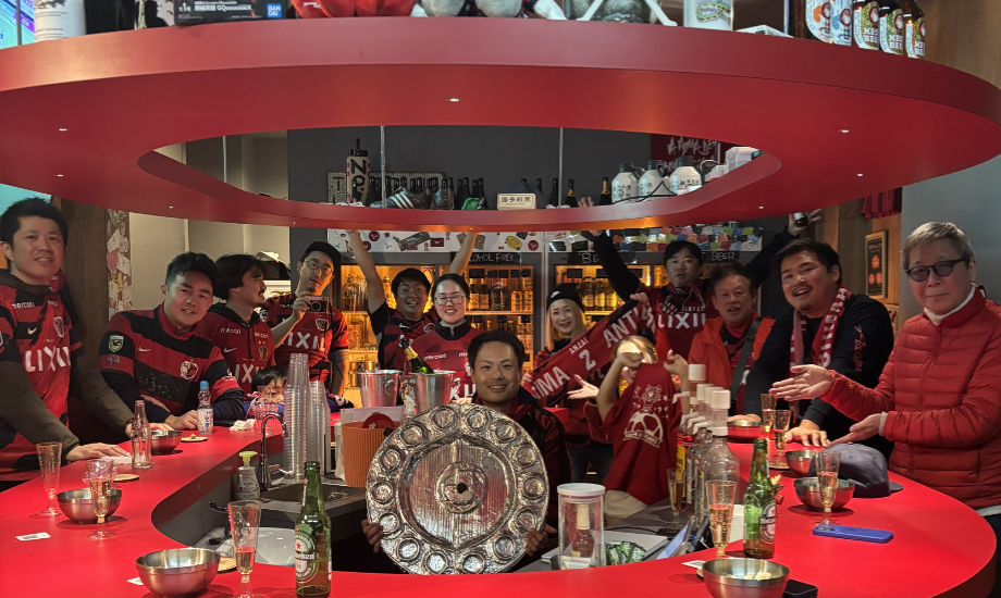 黒木さんはスポーツバーのシャッターを開けて中を見せてくれました。店内には、鹿島アントラーズの選手のサインやユニフォーム、写真が広がり訪れる人を興奮させる店内でした。